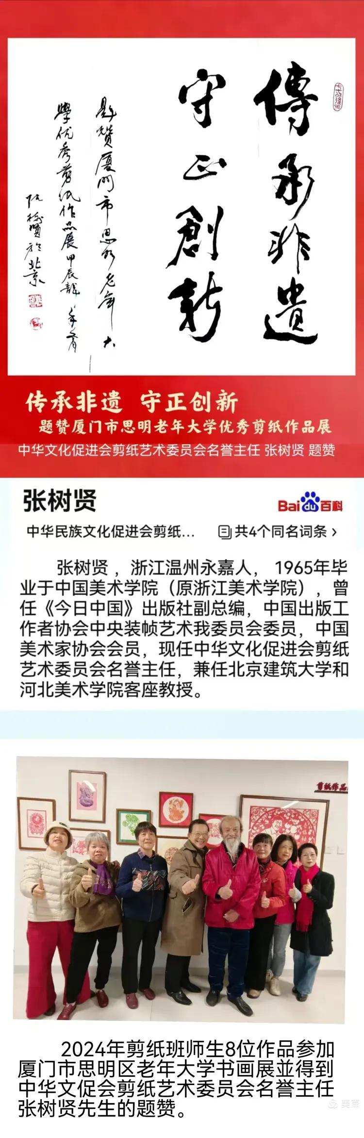 洪志标教授任教思明区老年大学 传承非遗剪纸班结业作业展