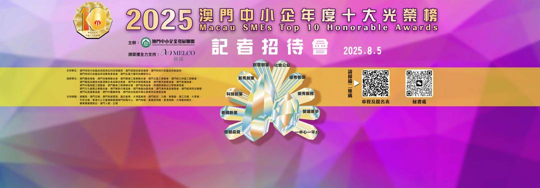 【灣新社/大灣區時報澳門訊,記者甘達正綜合報道】由澳門中小企業發展聯盟主辦,經濟及科技發展局、招商投資促進局、旅遊局、消費者委員會及生產力暨科技轉移中心支持的“2025年度澳門中小企十大光榮榜”現接受提名,設“光榮榜”“提名獎”及“網上最受歡迎獎”獎項,頒獎禮將於12月12日在君悅酒店舉行。