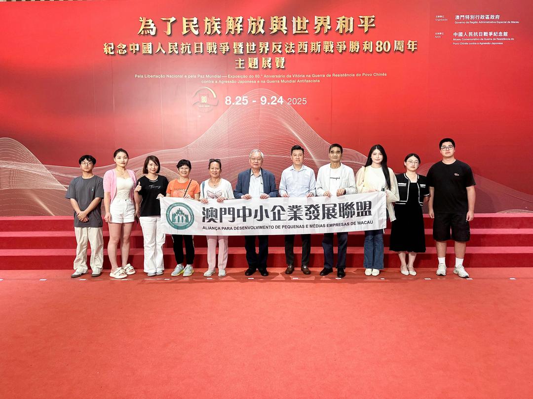 由澳門特區政府主辦、中國人民抗日戰爭紀念館支持的“為了民族解放與世界和平——紀念中國人民抗日戰爭暨世界反法西斯戰爭勝利八十周年”主題展覽目前正於中葡平台綜合體隆重舉行。為深化歷史傳承、緬懷先烈、弘揚愛國精神,澳門中小企業發展聯盟于12日下午六時半組織會員代表前往參觀,重溫抗戰歷史,汲取奮進力量。